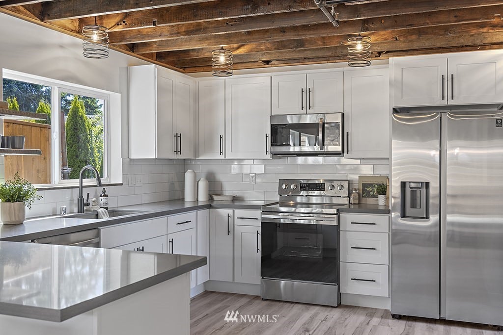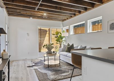 Brand new construction of a Arbor DADU floor plan in Seattle, WA. This is a two story 863 sq. ft. backyard cottage (DADU) with 2 bedrooms and 1 bathrooms. Custom carpentry & utilization of reclaimed wood show pride in craftsmanship. Gorgeous finishes & thoughtful touches: quartz counters, hardwood floors, designer tile, floor to ceiling windows & open exposed beams.